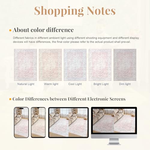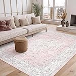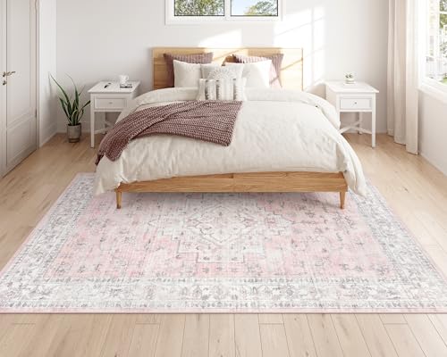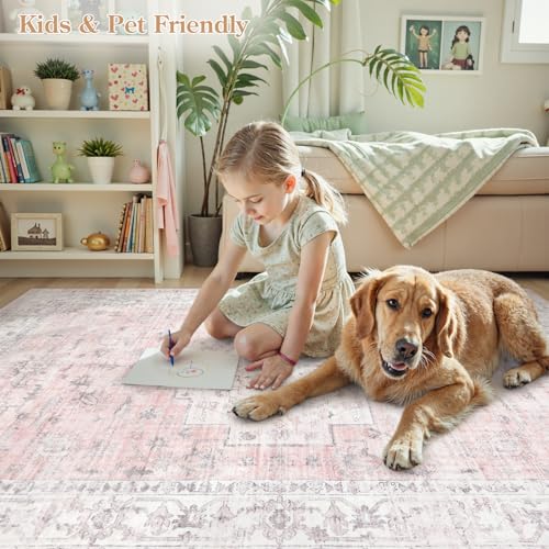 LIVEBOX Pink 5×7 Area Rug for Bedroom Girls, Boho Washable Rugs for Living Room Nursery, Non-Slip Indoor Soft Carpet Low-Pile Farmhouse Carpets for Dining Room Kids Playroom, Pink
